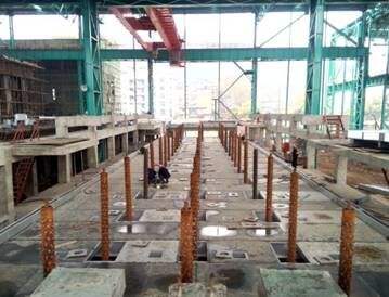 臺車式退火爐鋼 結(jié)構(gòu)主要包括爐殼支撐框架和驅(qū)動設(shè)備支撐框架(平臺鋼結(jié)構(gòu))。考慮到爐殼潛在的熱脹冷縮因素,各段爐殼支撐框架與平臺鋼結(jié)構(gòu)采川相互獨立結(jié)構(gòu)。各爐段的底 輥室先安裝就位,以自己四角立柱為基準完成4個基準立柱焊接;再焊接左右兩個整體端板.而操作側(cè)和傳..